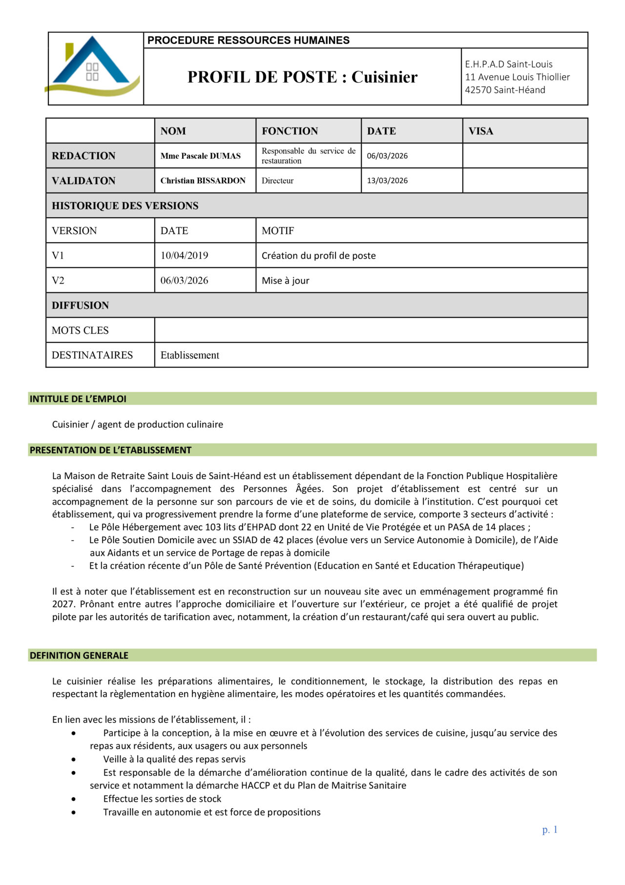 CUISINIER(E) EN EHPAD – 100% – à partir du 1er juin 2026
